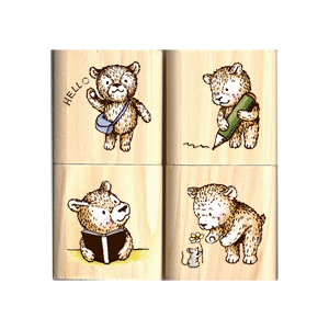 台灣 美日 Micia 四個入小木印章 細緻線條  小熊 字句 4W002