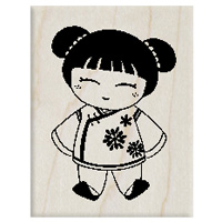 台灣 Micia 楓木印章 中國新年 中國娃娃 F257 Rubber Stamp Size:3.8*5.7cm